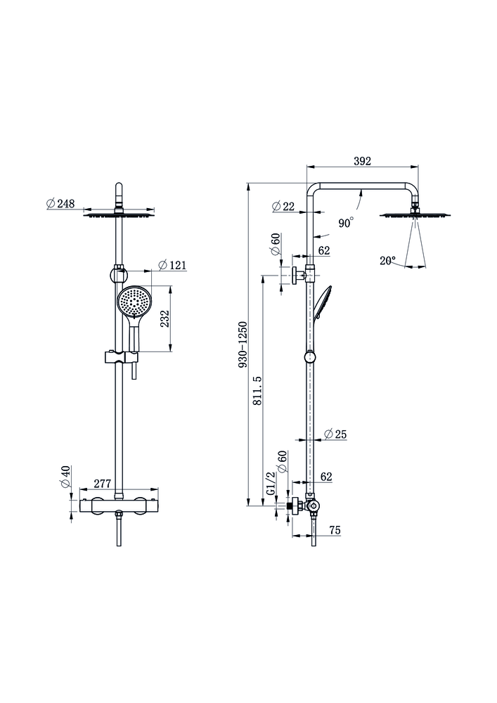 Душевая система Cersanit BRASKO (стойка) 3 режима, шланг 150, хром